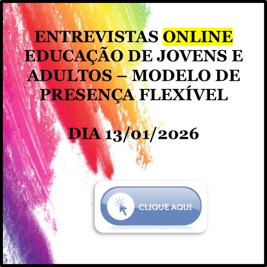 - ENTREVISTAS ONLINE – EDUCAÇÃO DE JOVENS E ADULTOS – MODELO DE PRESENÇA FLEXÍVEL – DIA 13/01/2026Relação de candidatos inscritos para o processo seletivo de credenciamento, seleção e classificação de docentes para … Leia mais »