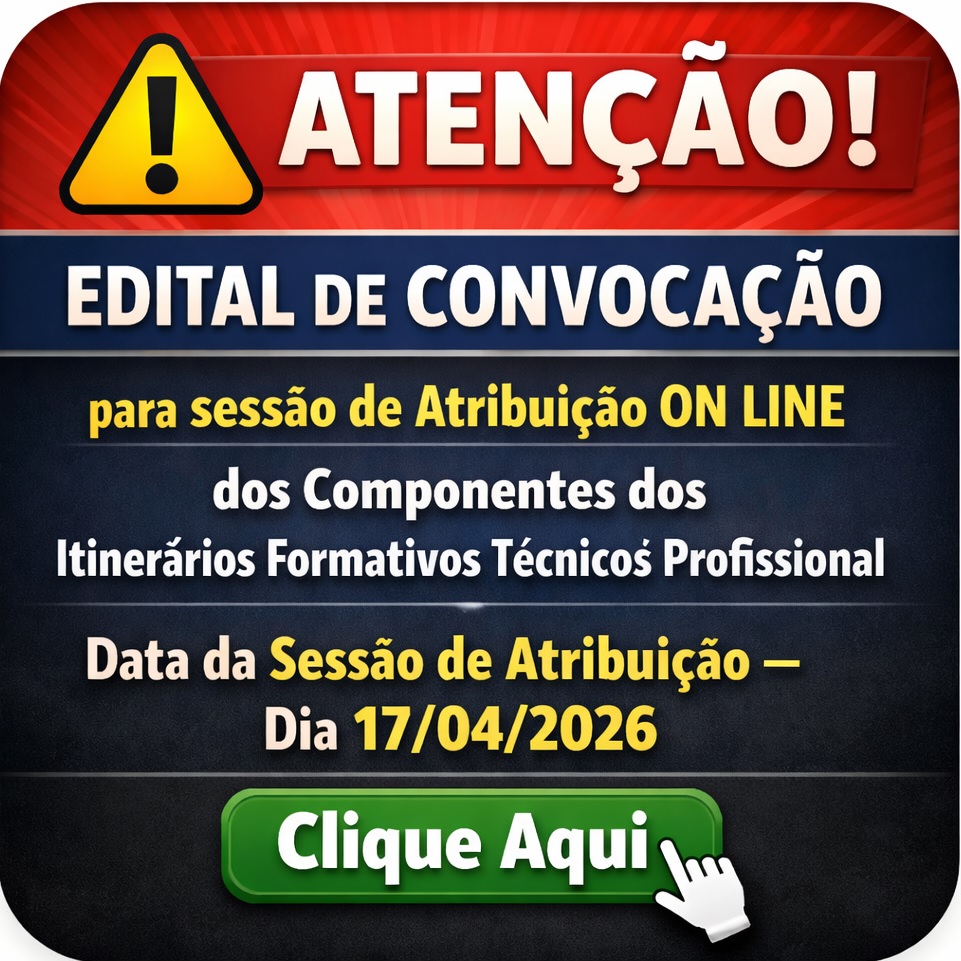 - EDITAL – CONVOCAÇÃO PARA SESSÃO DE ALOCAÇÃO PARA A FUNÇÃO DOCENTE PROGRAMA ENSINO INTEGRAL – PEI – …Publicado na Edição de 10 de Abril de 2026 – Caderno Executivo – Seção Atos de … Leia mais »