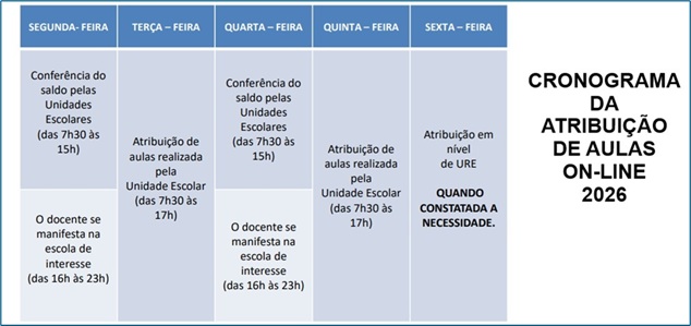 – Cronograma para atribuição de aulas conforme previsto no Comunicado Instrucional