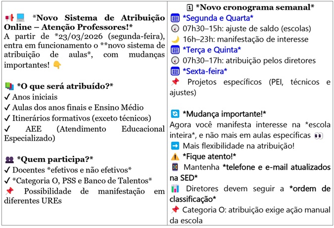 – Comunicado Instrucional para Atribuição de Aulas – 03/2026